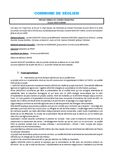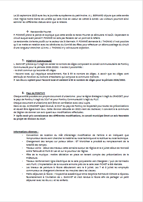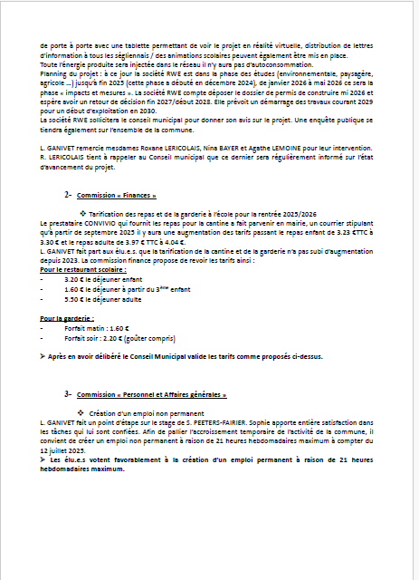 Je vous invite à prendre connaissance du Compte-Rendu du Conseil Municipal du 23/06/2025
